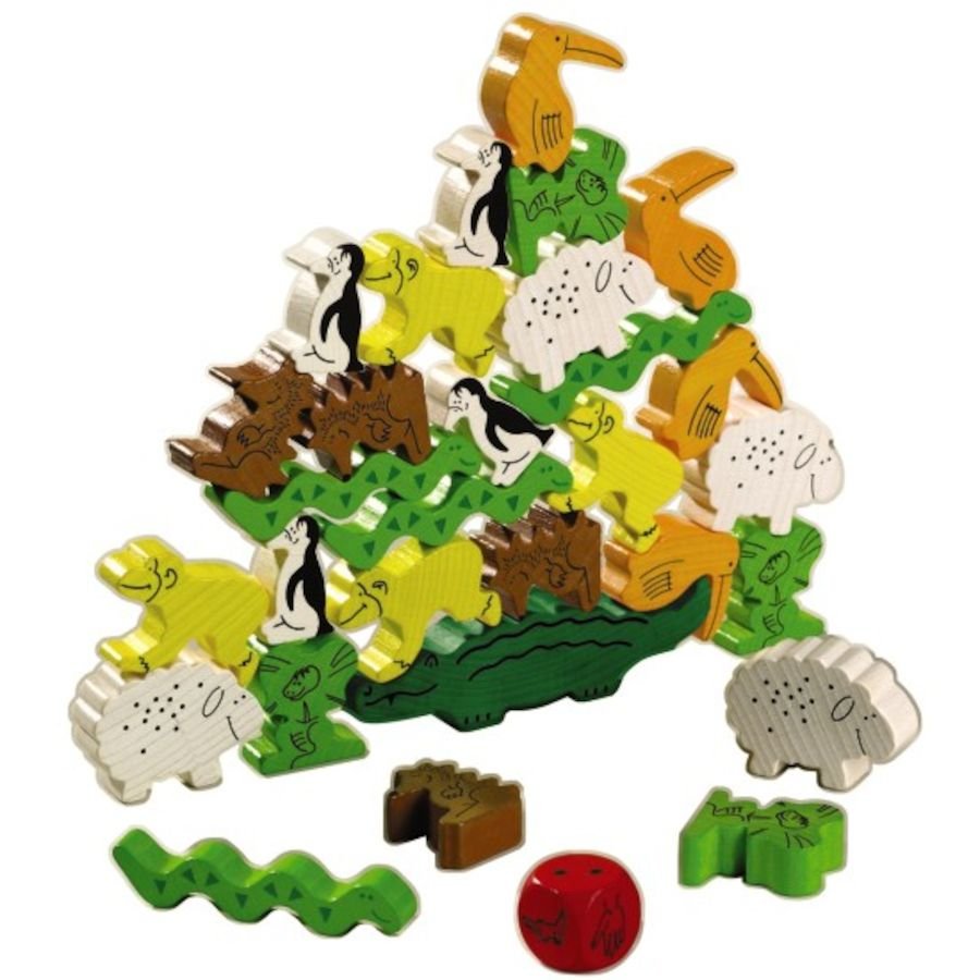 Em Animal Upon Animal os jogadores vão desafiar sua habilidade de equilibrar os animais uns sobre os outros. No ínicio do jogo o crocodilo é colocado no centro da mesa, ele será a base da pirâmide. Cada jogador recebe sete animais. Em seu turno, o jogador deverá rolar um dado e empilhar um animal de acordo com o resultado deste dado: Empilhar um ou dois animais, entregar um animal a outro jogador ou colocar um novo animal na base da pilha de animais. Caso um jogador derrube os animais da pilha, ele recebe dois dos animais caídos. A partida termina assim que um jogador conseguir empilhar todos os seus animais. Este jogador vence e é eleito o melhor empilhador de animais do dia! Animal Upon Animal é um jogo para 2 a 4 jogadores, recomendado a partir de 4 anos e com duração média de 15 minutos. No Brasil, é publicado pela editora Conclave. Consulte o manual para detalhamento completo das regras do jogo.