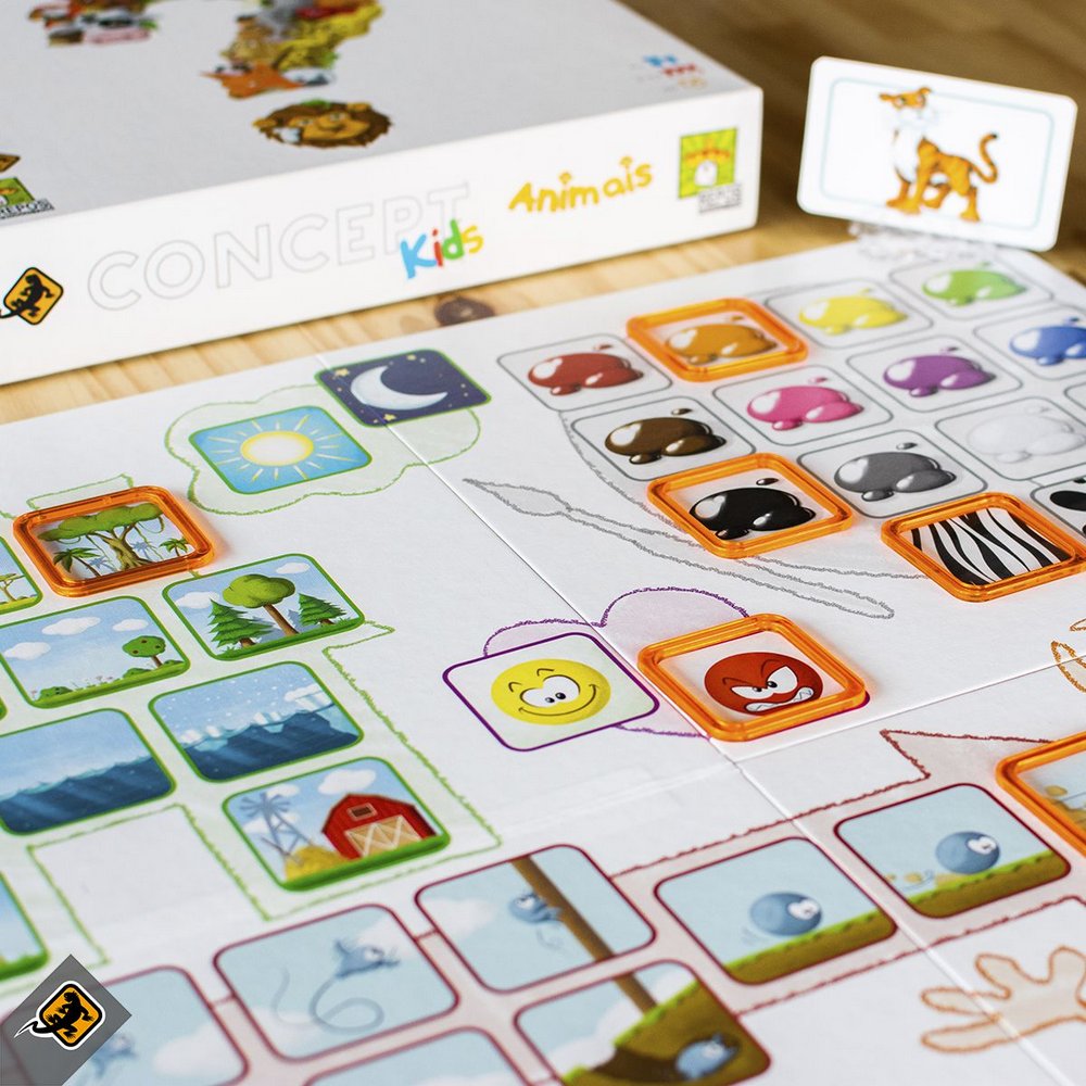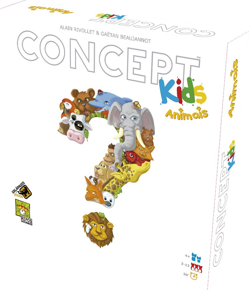 Concept Kids: Animals é uma versão cooperativa do jogo renomado Concept, adaptada para crianças que ainda não sabem ler. O jogo oferece 110 animais a serem adivinhados, divididos em dois níveis de dificuldade. Na sua vez, as crianças tentam fazer os outros adivinharem um animal colocando aros em volta dos ícones ilustrados no tabuleiro de jogo. Assim, a criança indica uma característica do animal que deve ser adivinhado. As categorias vão desde características físicas e comportamentais dos bichos até seus habitos alimentares e habitat.