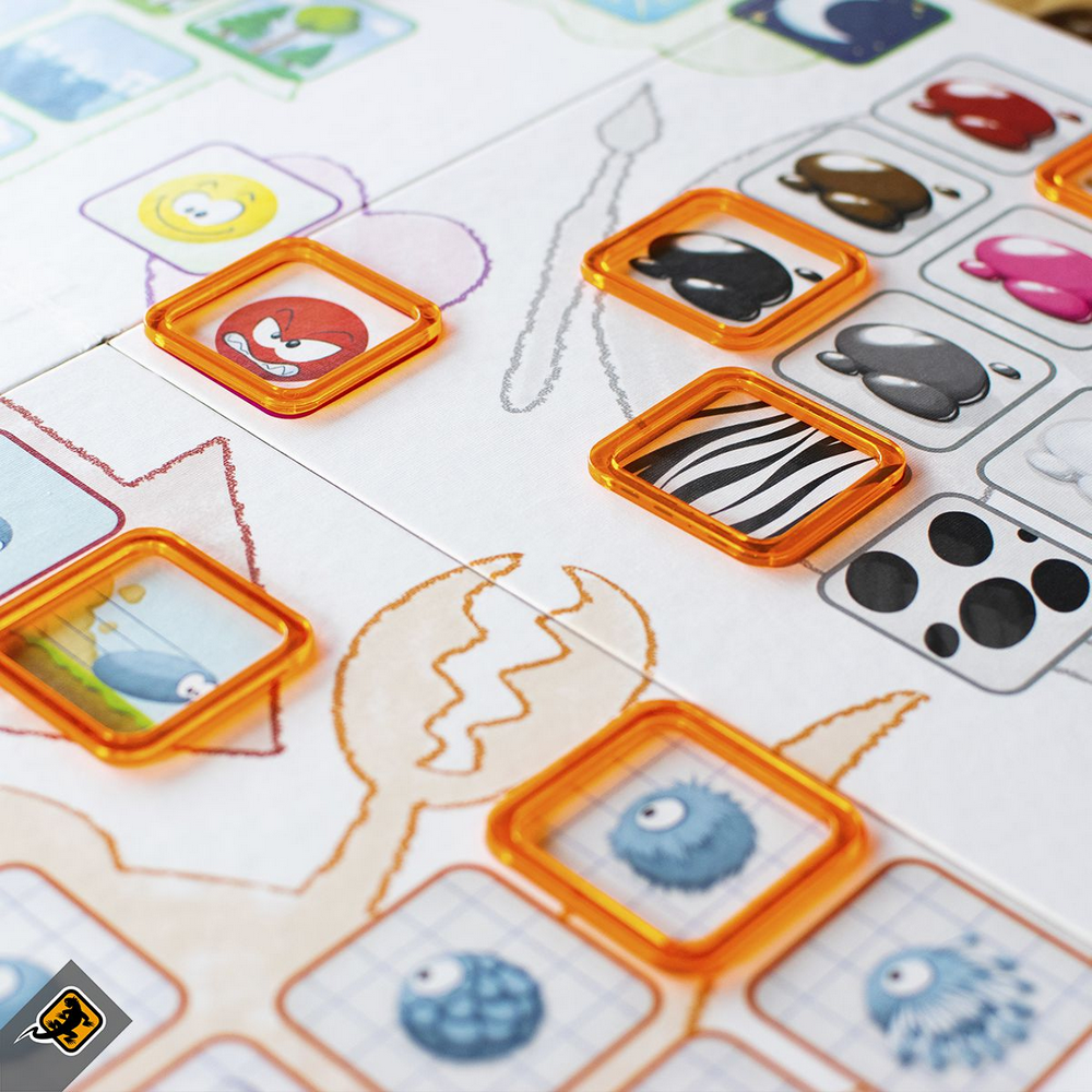 Durante o jogo, todas as crianças farão VOCÊ adivinhar um animal ao descrevê-lo usando somente os ícones no tabuleiro. Pegue a carta do topo do baralho, sem olhá-la, e coloque-a no porta-cartas de forma que todas as crianças consigam vê-la. Em seguida, em turnos, cada uma das crianças coloca um aro em um ícone no tabuleiro do jogo para tentar te ajudar a adivinhar o animal. Cada ícone mostra uma característica como cor, tipo de movimento, paisagem, etc. Você pode tentar adivinhar quantas vezes quiser. No entanto, as crianças só podem responder sim ou não a essas tentativas. Se você adivinhar o animal corretamente, coloque a carta virada para cima ao lado do baralho. Essa carta valerá 1 ponto no fim do jogo. Se não conseguir adivinhar e desistir, as crianças revelarão o animal para você. Em seguida, coloque a carta na caixa – ela não será contada na pontuação final. Cada partida é jogada com 12 cartas e os participantes devem acertar o maior número possível de animais para alcançar a maior pontuação!