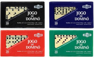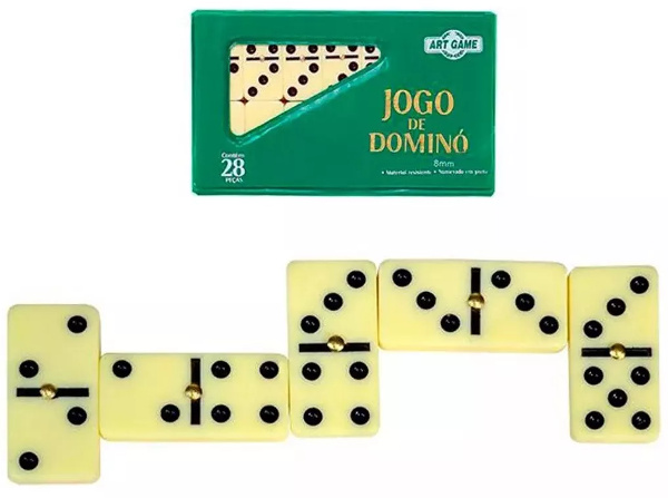 Acredita-se que o dominó tenha surgido na China por volta de 150 a.C, e sua criação é atribuída a um soldado chinês chamado Hung Ming. O conjunto tradicional de dominós, conhecido como sino-europeu, é formado por 28 peças retangulares, com pontos representanto números de zero (nenhum ponto preto) até seis (seis pontos pretos). Cada peça possui dois conjuntos de números em suas pontas, e cada peça somente pode se ligar a outra com o mesmo número. Cada jogador inicia o jogo com 7 peças na mão e as peças que restarem vão ficar disponíveis para compra (com a face virada para baixo). Em seu turno, cada jogador deve colocar na mesa uma peça cujo número combine com uma das duas pontas livres disponíveis na mesa. Se o jogador não possuir em sua mão nenhuma peça com combine com as pontas livres na mesa, o jogador deve "comprar" novas peças (caso ainda existam peças disponíveis para compra) ou passar a vez. O jogador que primeiro conseguir baixar todas as suas peças na mesa é o vencedor da rodada! Dominó é um jogo para 2 a 4 jogadores, recomendado a partir de 5 anos e com duração média de 30 minutos. No Brasil, é publicado pela editora Art Game. Consulte o manual para detalhamento completo das regras do jogo.