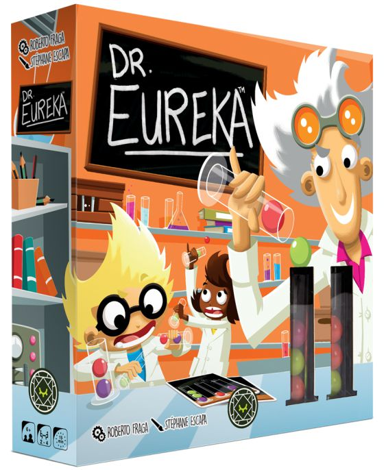 Em Dr. Eureka cada jogador recebe 3 tubos de ensaio. Cada tubo contém duas bolas coloridas, sendo 2 bolas verdes, 2 bolas vermelhas e 2 bolas roxas. Em cada turno é revelada uma carta desafio e colocada no centro da mesa. A Carta Desafio contém uma imagem mostrando uma sequência dos três tubos com bolas coloridas dentro. A missão dos jogadores é replicar exatamente a figura da carta de desafio, e para tal, os jogadores devem transferir as bolas de uns tubos para os outros, sem tocar nas bolas com as mãos e sem as deixar cair. O primeiro jogador a obter a combinação certa das bolas nos tubos de ensaio grita "Eureka!". Se os outros jogadores concordarem que o arranjo está certo, este jogador ganha a Carta Desafio, que vale 1 ponto. O primeiro jogador a atingir 5 pontos (5 cartas de Desafio) é o vencedor.Dr. Eureka é um jogo divertido que estimula a observação e o raciocínio de crianças e adultos. Dr Eureka é um jogo para 2 a 4 jogadores, recomendado a partir de 6 anos e com duração média de 15 minutos. No Brasil, é publicado pela editora Mandala. Consulte o manual para detalhamento completo das regras do jogo.