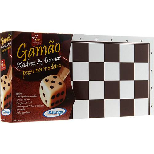 É possível encontrar no mercado tabuleiro e peças de Gamão nas mais diversas qualidades e preços. Deixamos aqui a sugestão do tabuleiro combinado de Gamão da Xalingo, que inclui também o jogo de Damas e Xadrez Gamão é um jogo para 2 jogadores, recomendado a partir de 8 anos e com duração média de 30 minutos. No Brasil, é publicado pela editora Xalingo. Consulte o manual para detalhamento completo das regras do jogo.