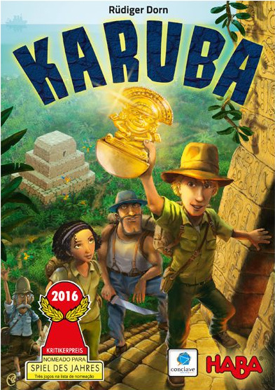 Muitas luas chegaram e passaram desde que os barcos saíram para a jornada rumo a Karuba. Assim que chegarem à ilha, cada jogador irá liderar uma equipe de exploração composta por quatro aventureiros. Agora eles devem caminhar pela densa selva para alcançar os templos. Cada jogador irá utilizar fichas com trilhas para criar seus próprios caminhos e encontrar os tesouros dos templos! Pelo caminho, os aventureiros poderão coletar cristais e pepitas de ouro, que também contarão como tesouros ao final da partida! Karuba é um jogo para 2 a 4 jogadores, recomendado a partir de 8 anos e com duração média de 40 minutos. No Brasil, é publicado pela editora Conclave. Consulte o manual para detalhamento completo das regras do jogo.