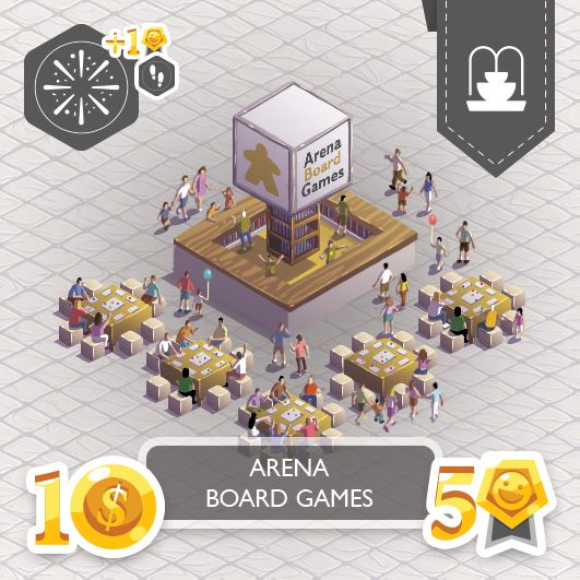 1- Comprar uma Peça de Construção do Tabuleiro de Projetos e construí-la em seu Tabuleiro Individual, pagando o custo em Pontos de Renda indicado no Tabuleiro de Projetos e gastando também 1 Ficha de Compra. Construções só geram Renda, Felicidade e eventuais bônus se estiverem ativas. Para isso, é necessário que elas cumpram duas condições: Precisa haver um Funcionário na Construção e precisa haver Peças de Rua formando um caminho contínuo entre a Construção e a Entrada do parque. As peças de construção mostram o nome e a ilustração da construção, além das seguintes informações: A Renda gerada pela peça; a Felicidade gerada pela peça; o Tema da peça; o Tipo de Construção e eventuais lembretes de habilidades. Peças de Construção que tenham o mesmo tema que o tabuleiro em que foram construídas fornecem um bônus de +1 de Felicidade ao parque. Peças de Construção de um tema diferente fornecem +0 de Felicidade, e Peças de Construção sem Tema geram uma penalidade de -1 de Felicidade.