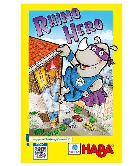 Em conjunto, os jogadores construirão uma casa de cartas, andar por andar, o mais alto que puderem, para o Super Herói Rhino. Esta casa, assim como a sua, é erguida sobre paredes e lajes. Como você nunca saberá qual altura ela poderá alcançar, as lajes irão se parecer como telhados. As marcas nos telhados determinam como o próximo andar deve ser erguido e seus símbolos certas condições para construí-lo, o que poderá bagunçar um pouco as coisas. O objetivo do jogo é ser o primeiro a colocar suas próprias cartas de telhado. Para construção das torres, o jogador pode usar ambas as mãos para empilhar, mas somente poderá tocar as cartas de parede e telhado que forem utilizadas. Além disso, as paredes devem ser posicionadas o mais próximo possível das marcas indicadas nas cartas de telhado. Rhino Hero é um jogo para 2 a 5 jogadores, recomendado a partir de 6 anos e com duração média de 15 minutos. No Brasil, é publicado pela editora Conclave. Consulte o manual para detalhamento completo das regras do jogo.