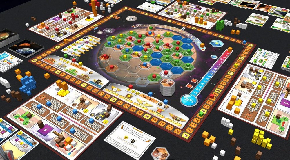 Em Terraforming Mars cada jogador controla uma corporação cujo objetivo é conseguir o maior número de Pontos de Vitória ao fim do jogo, através do processo de terraformação do planeta. Temperatura, oxigênio e oceano são chamados de parâmetros globais. Toda vez que o jogador aumenta um deles, o índice de terraformação deste jogador aumenta em mesmo número, dando a ele renda e pontuação maiores, pois ao fim do jogo, os índices de terraformação se transformam em Pontos de Vitória. O jogo inicia com 0 % de oxigênio, nenhum tile de oceano no tabuleiro central e temperatura em -30 graus Celsius. O jogo termina quando há oxigênio suficiente para respirar (14%), oceanos suficientes que permitam um clima semelhante ao da Terra (9 oceanos), e temperatura bem acima do ponto de congelamento (+8 C°). Só então será possível, e talvez confortável, viver na superfície de Marte! O tabuleiro central do jogo tem escalas para o registro de temperatura, nível de oxigênio, índice de terraformação e gerações. Nele há um mapa da superfície ao qual os jogadores adicionam tiles de oceano, vegetação e cidade à medida que o jogo progride. Há também uma lista de projetos-padrão disponíveis a todos os jogadores, assim como marcos e prêmios pelos quais os jogadores podem competir.