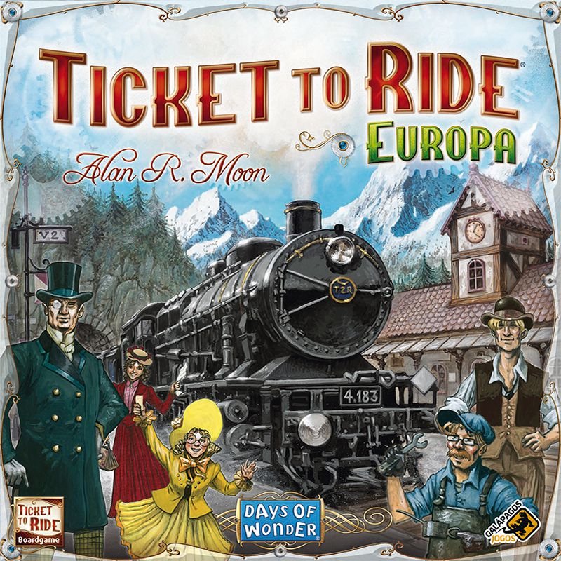 Ticket to Ride® Europa é mais um capítulo da série de aventuras ferroviárias que é um sucesso de vendas. Nele os jogadores juntam vários tipos de cartas de vagão e as usam para construir estações, atravessar túneis, navegar em balsas e controlar rotas ferroviárias por toda a Europa. Ticket to Ride Europa é um jogo simples e elegante que pode ser aprendido em 5 minutos e encanta não só toda a família, mas também os jogadores experientes.