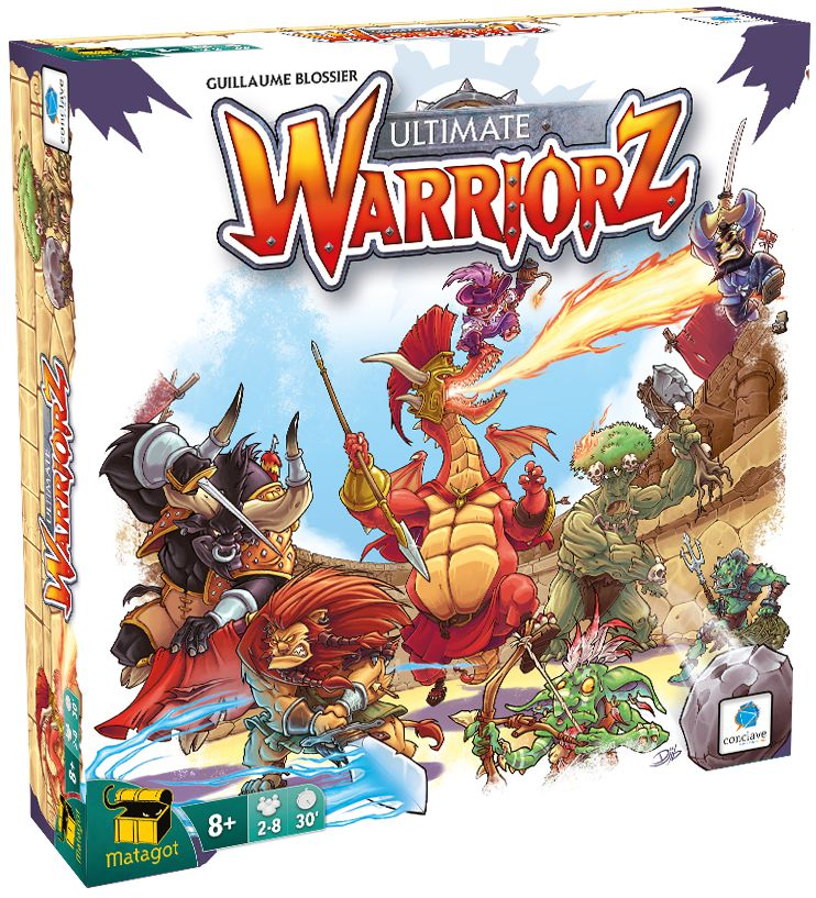 Em Ultimate Warriorz, cada jogador joga com um dos “Ultimate Warriorz”, prontos para fazerem o que for necessário para vencer a batalha tribal conhecida como “O Estrondo da Tribo”, organizado a cada eclipse solar, na legendária Ilha do Fim do Mundo. O clima de “Cada um por si” é garantido porque, no fim, apenas um Guerreiro permanecerá de pé: O escolhido, o único Ultimate Warriorz! Será necessário um excelente timing para vencer esta batalha! Posicione corretamente o seu guerreiro na arena e, com suas cartas, utilize as técnicas secretas no melhor momento, usando também a vantagem de seu item mágico para causar a maior quantidade de dano... Mas, sobretudo, evite os ataques dos seus inimigos! Ultimate Warriorz é um jogo para 2 a 8 jogadores, recomendado a partir de 8 anos e com duração média de 30 minutos. No Brasil, é publicado pela editora Conclave. Consulte o manual para detalhamento completo das regras do jogo.
