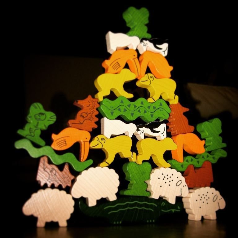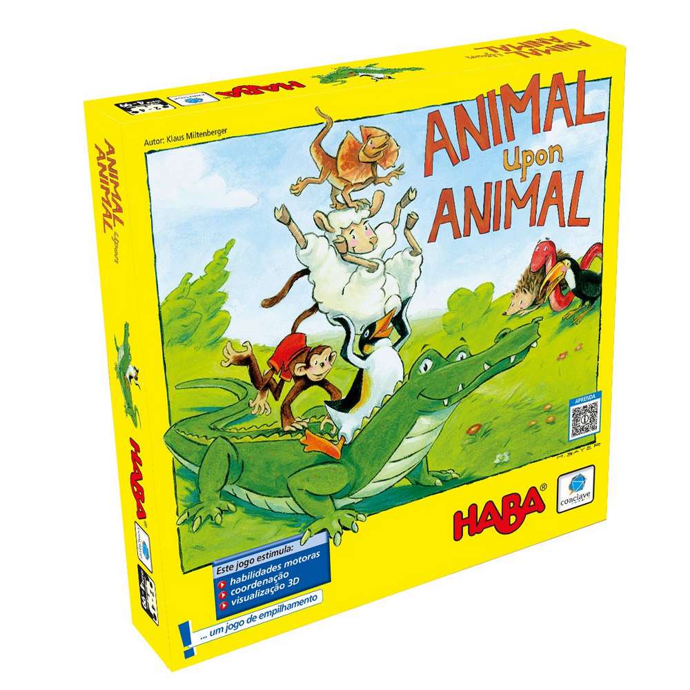 Em Animal Upon Animal os jogadores vão desafiar sua habilidade de equilibrar os animais uns sobre os outros. No ínicio do jogo o crocodilo é colocado no centro da mesa, ele será a base da pirâmide. Cada jogador recebe sete animais. Em seu turno, o jogador deverá rolar um dado e empilhar um animal de acordo com o resultado deste dado: Empilhar um ou dois animais, entregar um animal a outro jogador ou colocar um novo animal na base da pilha de animais. Caso um jogador derrube os animais da pilha, ele recebe dois dos animais caídos. A partida termina assim que um jogador conseguir empilhar todos os seus animais. Este jogador vence e é eleito o melhor empilhador de animais do dia! Animal Upon Animal é um jogo para 2 a 4 jogadores, recomendado a partir de 4 anos e com duração média de 15 minutos. No Brasil, é publicado pela editora Conclave. Consulte o manual para detalhamento completo das regras do jogo.