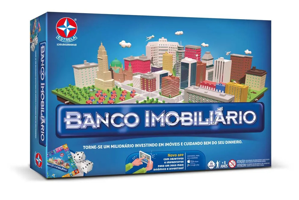 Veja nosso review deste famoso jogo que já faz parte da infância de muitos brasileiros e não deixe de conferir nossa sugestão de regras opcionais para tornar Banco Imobiliário um jogo mais rápido e com menos dependência de sorte! Banco Imobiliário com App é um jogo para 2 a 6 jogadores, recomendado a partir de 8 anos e com duração média de 120 minutos. No Brasil, é publicado pela editora Estrela. Consulte o manual para detalhamento completo das regras do jogo.
