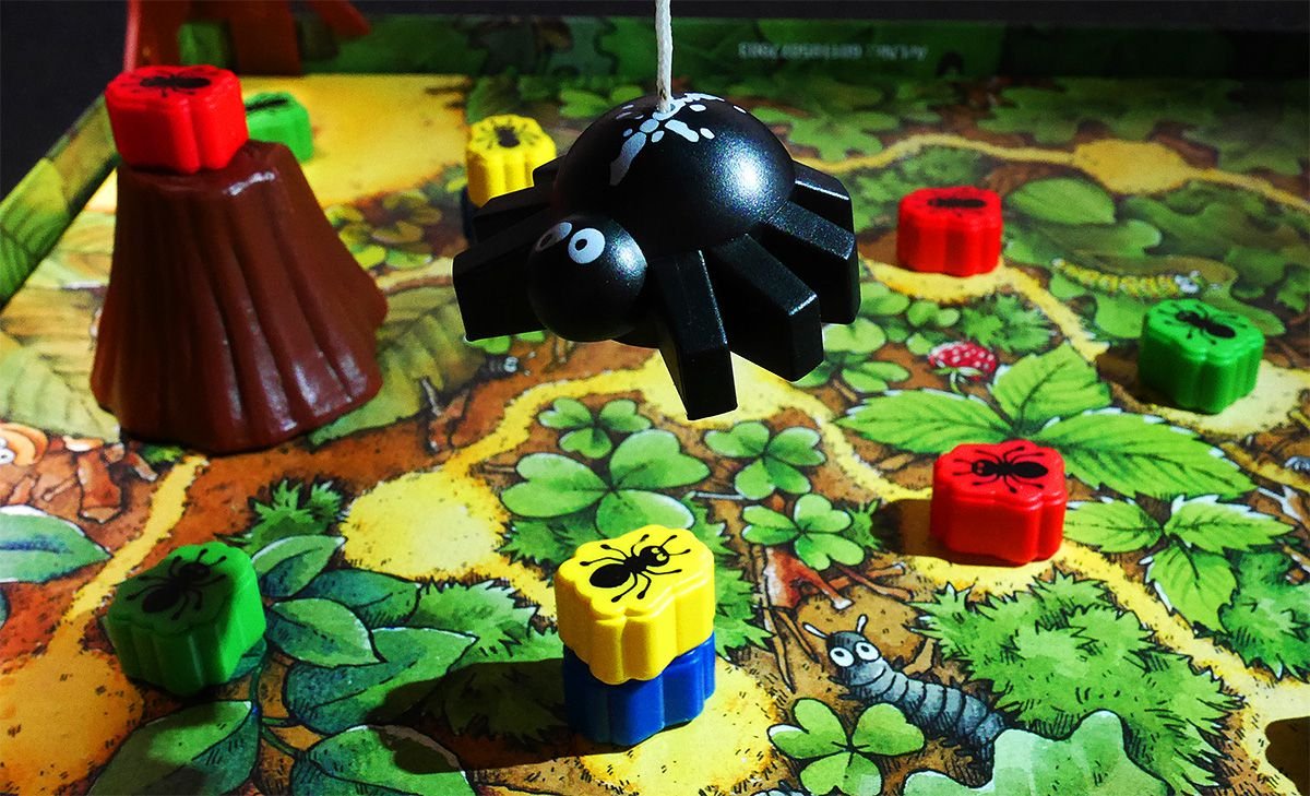 - Saiu uma aranha no dado verde? Significa que o jogador tem que mover as aranhas de acordo com o número indicado no dado branco! Ele pode repartir o movimente entre Parker e Peter. Se com esta movimentação o jogador conseguir baixar a Filomena o suficiente para ficar diretamente sobre uma formiga, ela irá capturá--la! Mas cuidado, pois se o jogador não estiver atento acabará por capturar uma de suas próprias formigas.