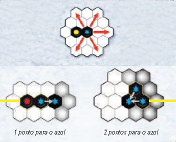 A pontuação ocorre da seguinte forma: Começando com um dos dois símbolos existentes na peça colocada, existem cinco linhas que partem deste símbolo (correspondente aos lados livres do hexágono). Em cada linha, o jogador conta o número de símbolos idênticos que formam uma sequência, parando de contar logo que chegar a um espaço vazio ou a um símbolo diferente. (o próprio símbolo da peça que acabou de ser colocada não entra na contagem). O resultado da contagem é o resultado em pontos neste símbolo e o jogador avança o cubo colorido (da mesma cor da peça) no marcador de placar, de acordo com o número de pontos recebido. Depois o jogador avalia de maneira similar o resultado do segundo símbolo da peça e pontua de maneira similar. Após colocação da peça, o jogador compra uma nova peça para repor sua mão. O jogo termina quando não é possível jogar mais nenhuma peça. Os jogadores verificam em seus respectivos marcadores qual a cor que possui a pior pontuação e esta é a pontuação final de cada jogador. O jogador que tiver o melhor placar é o vencedor. Genial é um jogo para 2 a 4 jogadores, recomendado a partir de 8 anos e com duração média de 45 minutos. No Brasil, é publicado pela editora Devir. Consulte o manual para detalhamento completo das regras do jogo.