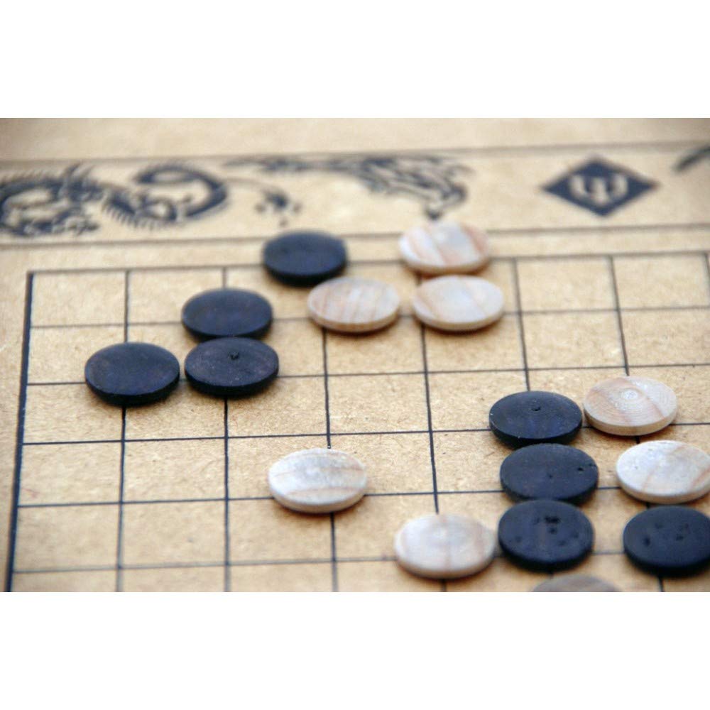| Componentes: | 1 tabuleiro em MDF, 85 peças de madeira claras, 85 peças de madeira escuras, folheto com regras e instruções para jogar |