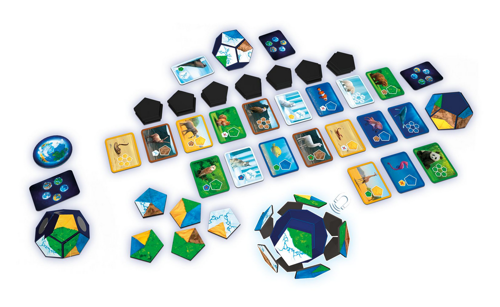 | Componentes: | 4 Núcleos de Planeta em 3D,50 Peças de Continente Magnéticas,45 Cartas de Animal,5 Cartas de Objetivo,1 Ficha de Primeiro Jogador,1 Berço Plástico para Acondicionar as Peças |