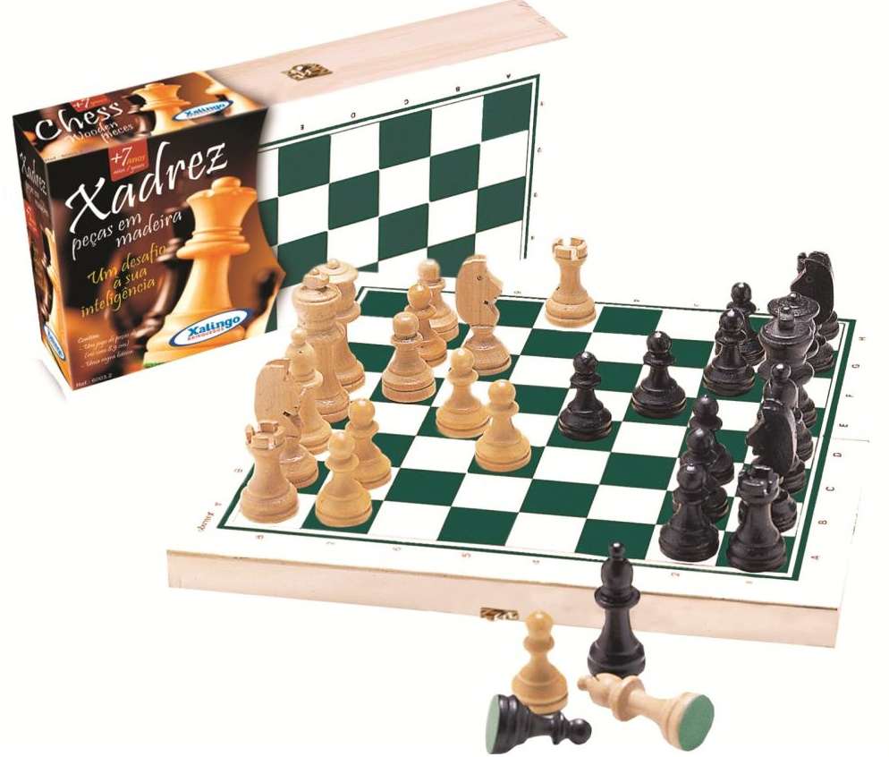 | Componentes: | 1 tabuleiro,16 peças brancas (2 Torres/ 2 Cavalos/ 2 Bispos/ 1 Rainha/ 1 Rei / 8 peões),16 peças pretas (2 Torres/ 2 Cavalos/ 2 Bispos/ 1 Rainha/ 1 Rei / 8 peões) |
